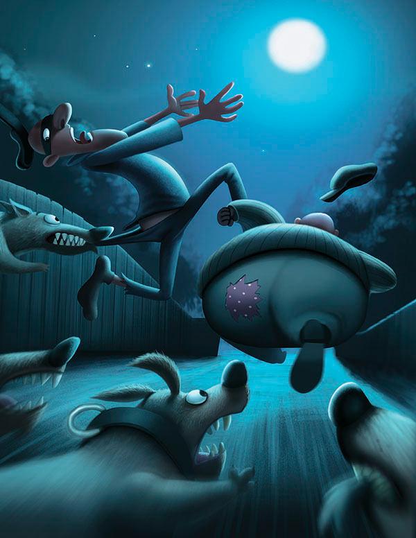А Мохнатик схватил его за шею и стал душить. А потом как отпустит! Такого ужаса на грабителя нагнал, что тот ноги в руки да бежать сломя голову прочь! А его друзья, услышав жуткий голос и крики, – за ним.