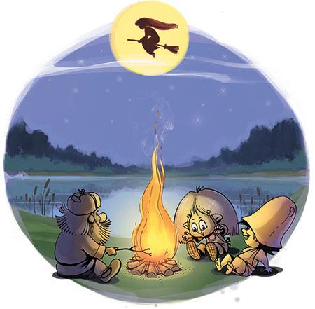 Только ведьма в тот вечер не спала. Она села на метлу и всё летала высоко в небе над весёлой компанией трёх друзей. Всё подслушивала и злилась, что опять не удалось проучить домовёнка. В ту ночь ведьма решила во что бы то ни стало добыть три древних камня, что колдовскую силу дают великую, непобедимую.