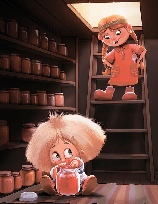 – Да я только попробовать… Это твоё? Извини… – Домовёнок, краснея от стыда, вытащил руку из банки, закрыл её крышкой и аккуратно поставил обратно на полку.