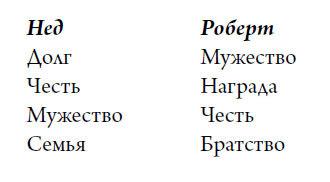 Если мы оценим личные ценности Неда и Роберта, то я предлагаю следующую иерархию: