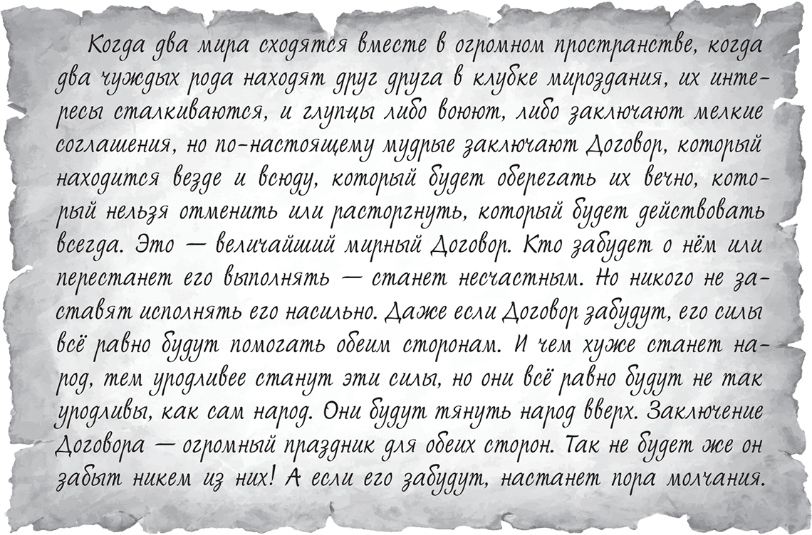 – Мы – люди Зала Явлений, которых я здесь представляю, – передаём вам – людям Круглого Зала – великую силу Закона. Пусть она даст вам мудрость для принятия верного решения.