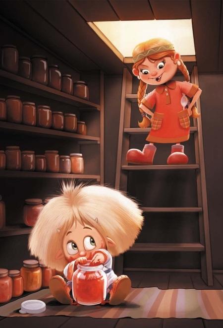– Да я только попробовать… Это твоё? Извини… – Домовёнок, краснея от стыда, вытащил руку из банки, закрыл её крышкой и аккуратно поставил обратно на полку.