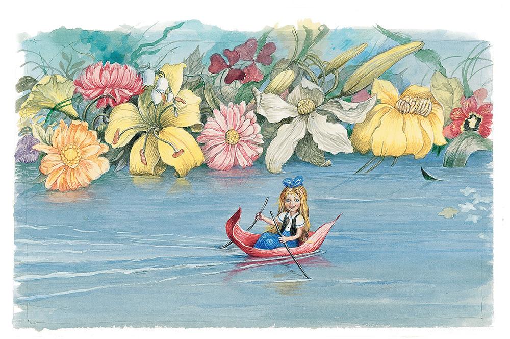 А листок всё плыл да плыл, и вот Дюймовочка попала за границу.