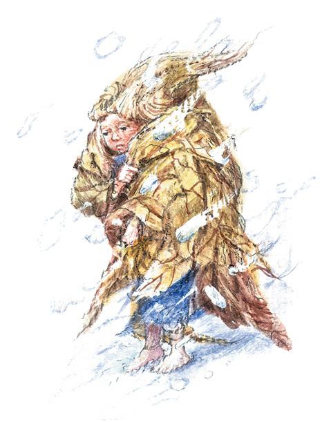 Целое лето прожила Дюймовочка одна-одинёшенька в лесу. Она сплела себе колыбельку и подвесила её под большой лопушиный лист – там дождик не мог достать её. Ела крошка сладкую цветочную пыльцу, а пила росу, которую каждое утро находила на листочках. Так прошли лето и осень; но вот дело пошло к зиме, длинной холодной зиме. Все певуньи птички разлетелись – кусты и цветы увяли, большой лопушиный лист, под которым жила Дюймовочка, пожелтел, весь засох и свернулся в трубочку. Сама крошка мёрзла от холода: платьице её всё разорвалось, а она была такая маленькая, нежная – долго ли тут замёрзнуть! Пошёл снег, и каждая снежинка была для неё то же, что для нас целая лопата снега; мы ведь большие, а она была всего-то с дюйм! Она завернулась было в сухой лист, но он совсем не грел, и бедняжка сама дрожала как лист.