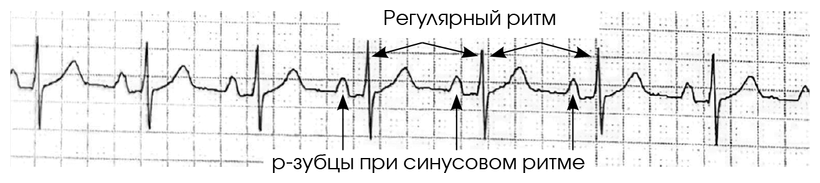Иллюстрация 3.1. Пример ЭКГ с нормальным синусовым ритмом