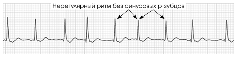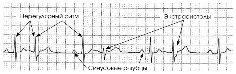 Иллюстрация 3.2. Пример ЭКГ с нерегулярным ритмом при экстрасистолии