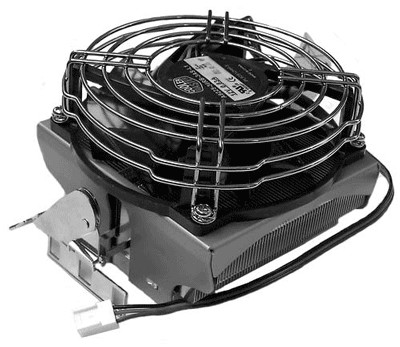 Обычно применяют комбинацию пассивного и активного охлаждения. Например, на процессоре установлен и радиатор, и вентилятор (рис. 2.4). Радиатор в данном случае отводит тепло от процессора, а вентилятор способствует эффективному охлаждению радиатора, обдувая его.