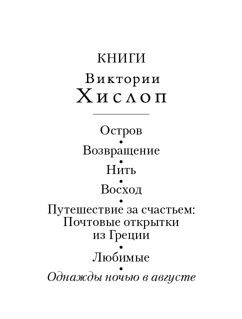 Однажды ночью в августе : роман / Виктория Хислоп ; пер. с англ. И. Лебедевой. — СПб. : Азбука, Азбука-Аттикус, 2021. — (Азбука-бестселлер).