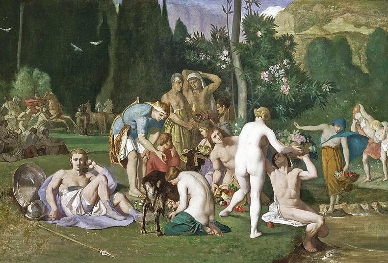 За эти работы Шаванн получил золотую медаль Салона, государство даже купило «Мир», художник отдал вместе с ним «Войну», чтобы не разлучать картины. Наконец он получает заказ на оформление музея Пикардии. Для него художник пишет еще два панно: «Работа» и «Отдых». Картины Шаванна о труде посвящены творческому преобразованию природы и напоминают скорее праздник, чем будничную обязанность (рис. 7).