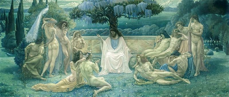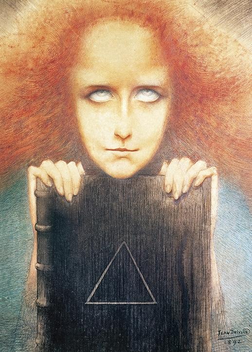 Воображаемые миры изображались на всех этапах развития живописи. В том числе религиозные и мифологические сюжеты. Возникает естественный вопрос: чем отличается символизм от живописи прошлых веков? Разница в подходе и видении. Символисты отказались от ортодоксальных вероучений, а также научного взгляда на мир, выбрав третий путь. Тщательное изучение духовной составляющей человеческого бытия нередко приводило символистов к оккультным и эзотерическим учениям. Тот же Дельвиль (и не только он) часто рассуждал о духовности через призму эзотерики (рис. 3).