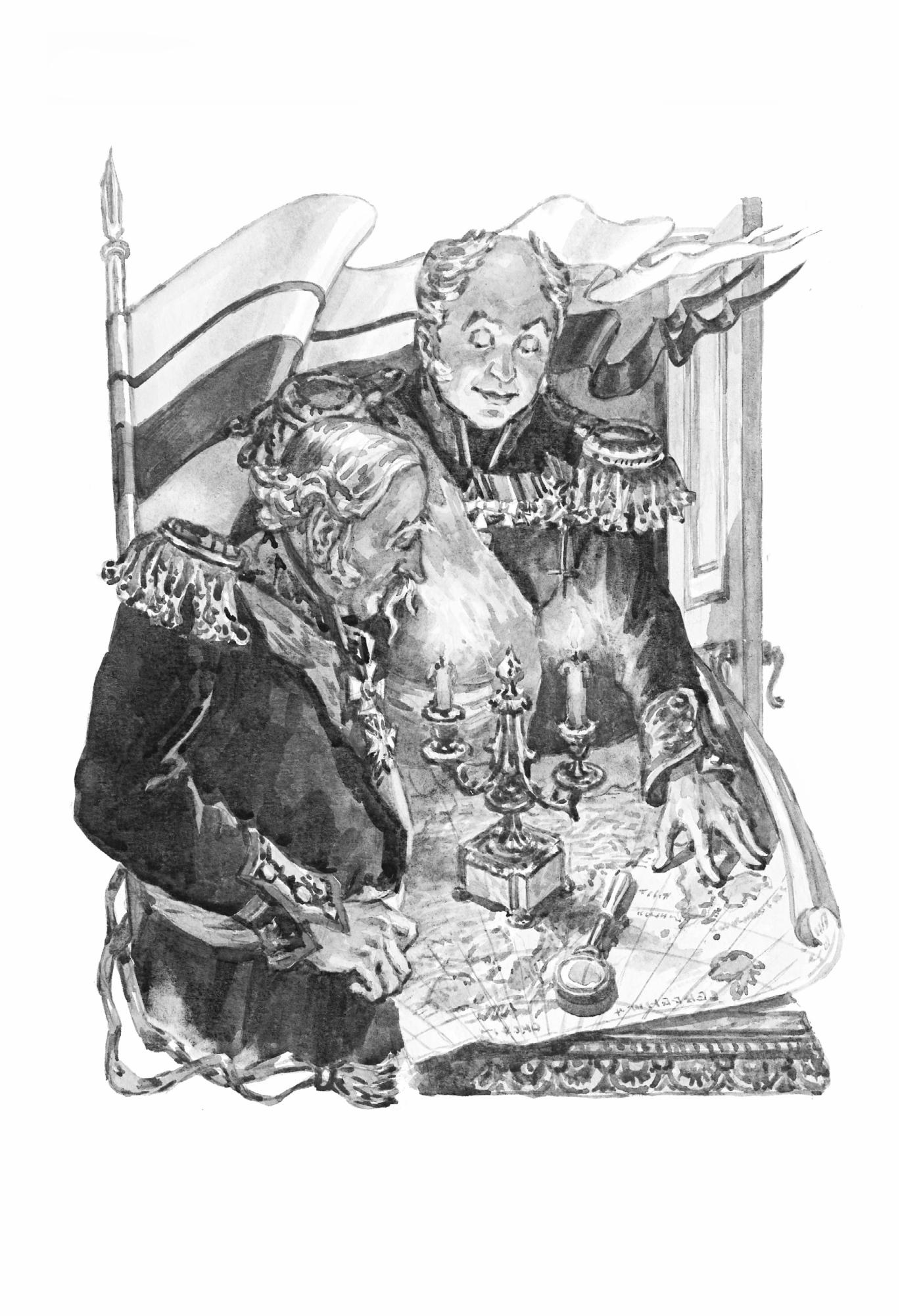 Платов ничего государю не ответил, только свой грабоватый [2] нос в лохматую бурку спустил, а пришёл в свою квартиру, велел денщику подать из погребца фляжку кавказской водки-кислярки [3], дерябнул хороший стакан, на дорожний складень [4] Богу помолился, буркой укрылся и захрапел так, что во всём доме англичанам никому спать нельзя было. Думал: утро ночи мудренее.