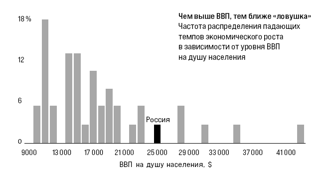 Показательным примером необходимости проблемного подхода, перехода от феноменологического описания к сущностному анализу является «ловушка среднего уровня дохода»[43].