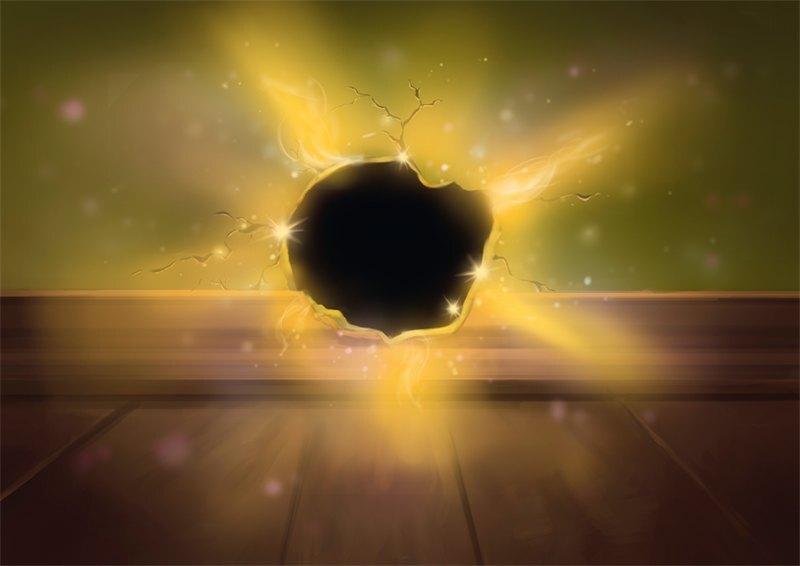 Макси расстелил на полу простыню и принялся перекладывать на неё все свои вещи. Вдруг стена прямо перед ними заскрипела, по ней от плинтуса поползли бесчисленные мелкие трещины… и – бах! – открылась самая прекрасная дыра, которую они когда-либо видели. Она отличалась от предыдущих. Края её переливались и сверкали так, что осветили тёмную комнату.