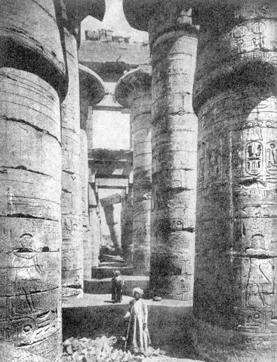 Мрака, который верхний ряд окон Карнакского храма не мог разогнать, было достаточно, чтобы с помощью всевозможных заклинаний вызвать суеверный страх перед Амоном-Ра – к чему, собственно, и стремились жрецы. Только инженеры не сумели создать больший благоговейный трепет с помощью полутемного, изобилующего пустотами пространства. Небольшая прочность камня на растяжение не позволяла установить более или менее длинные поперечные балки. Колонны были поставлены так густо, что занимали не меньше места, чем огороженные пространства, которые они должны были оставлять. Храм Амона-Ра едва мог считаться большим строительным успехом. Строительный метод Карнака – сооружение вокруг колонн и вдоль стен опорных конструкций из кирпича и песка, рамп и террас, на которые можно было затащить каменные блоки и установить их в нужное положение. Временные сооружения поэтапно разрушались – по мере того, как шло украшение храма резьбой и росписью. Между тем фундаменты в Карнаке были не так тщательно спроектированы и построены, как в других местах. Наводнения размыли их настолько, что некоторые колонны просели и части крыши обрушились.