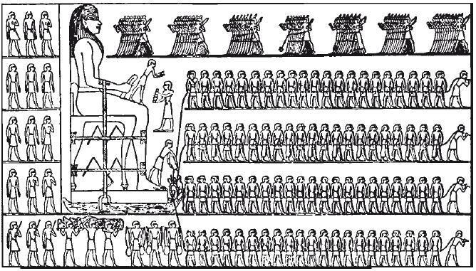 Насколько известно из раскопок, надписей на памятниках и документах на папирусе, в этот период почти не было значительных прорывов в области инженерных техник. Египтяне третьего тысячелетия использовали строительные методы, обусловленные окружающей средой. Они продолжали использовать те же методы тридцатью или больше веками позже, когда их страна перестала существовать как отдельная империя. Три фактора определили характер египетской инженерии. Первые – неограниченные людские ресурсы. Все операции основывались на неограниченном использовании времени и сил рабов (рис. 2.7), захваченных во время войн или набегов на соседей. Тягловый скот играл небольшую роль в египетском строительстве. Лошадь – почитаемое животное на Востоке – никогда не использовалась для работы. Да ее и не знали в Египте до 1700 года до н. э.