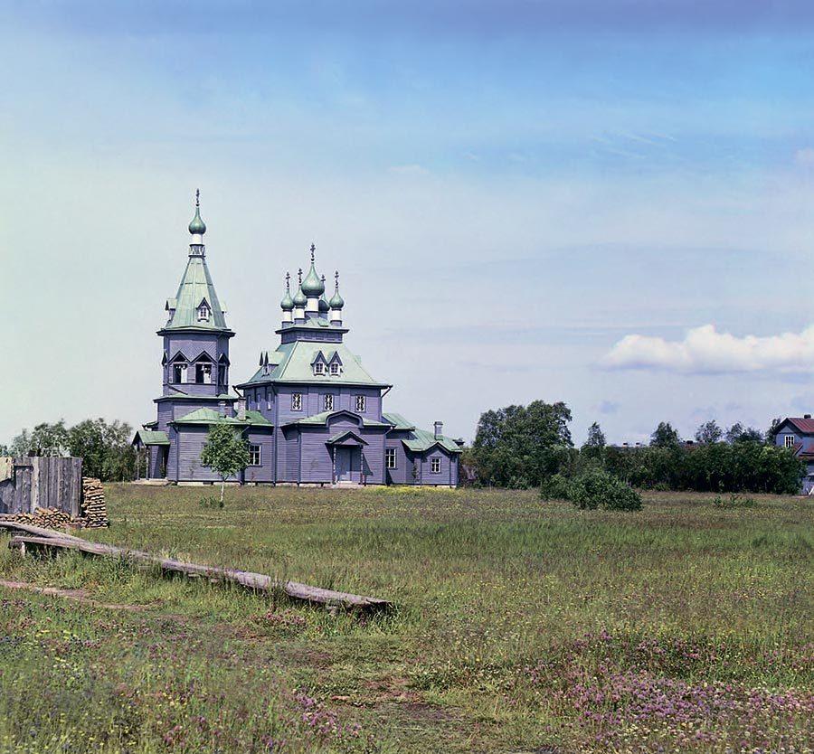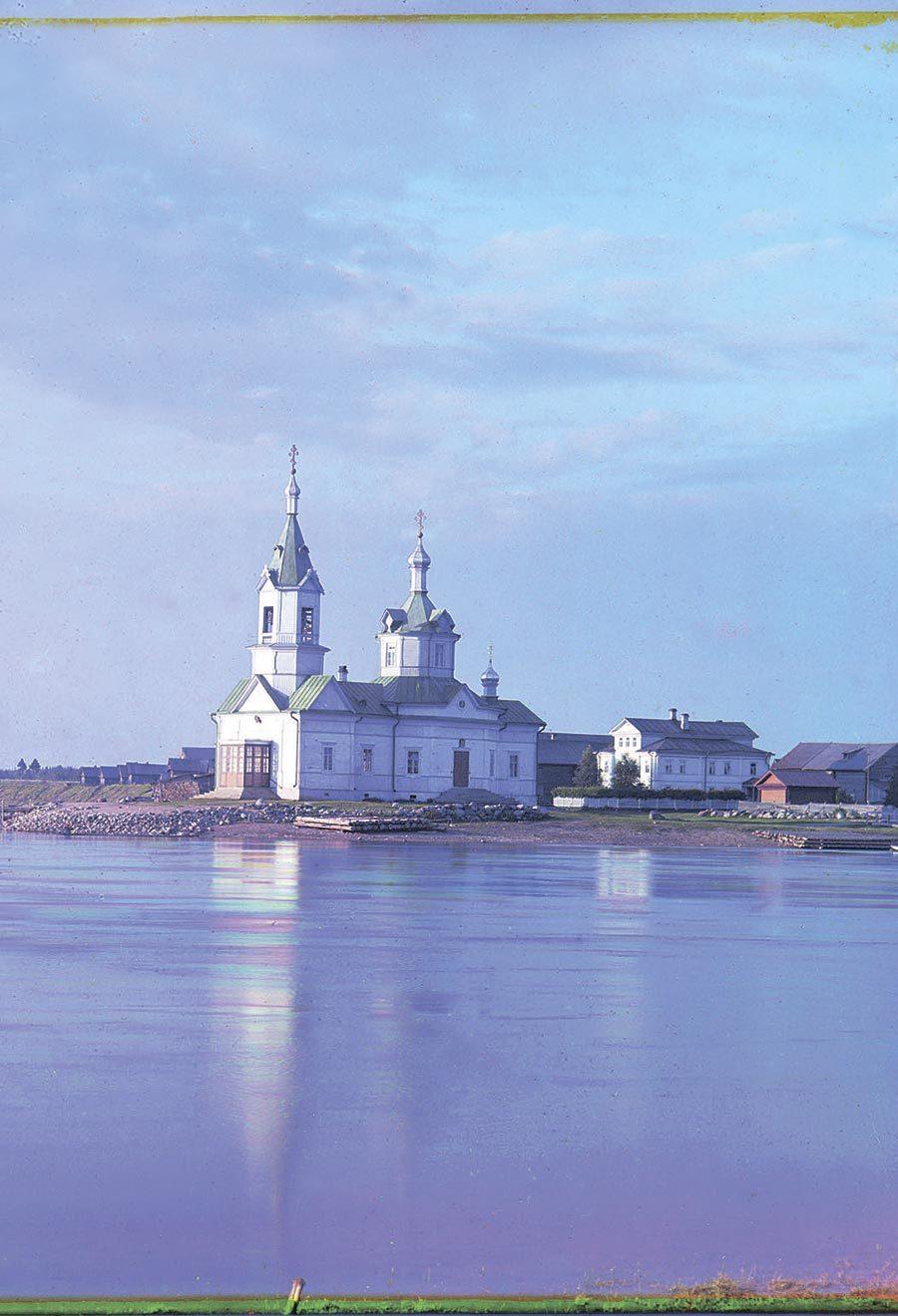 Река Важинка и село Важино [Богоявленская церковь в деревне Усть-Боярской, Важины.] Олонецкая губерния. 1909 г.[1]