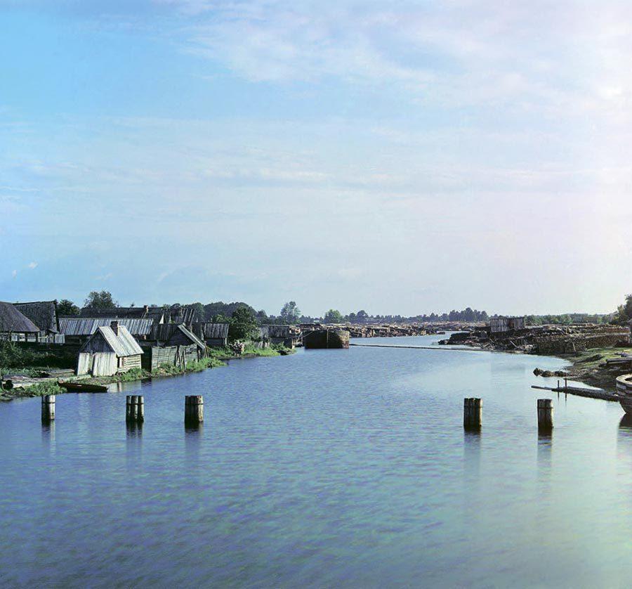 Вид на реку Назия от канала императора Петра I. Деревня Нижняя Назия. Санкт-Петербургская губерния. 1909 г.