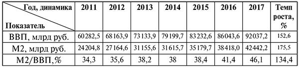 Расчет коэффициента монетизации экономики РФ с 2011 по 2017 г.