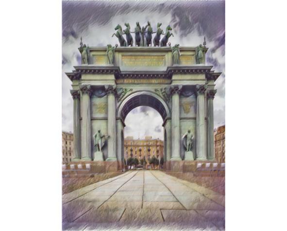 Если медь долго окислять, она становится зелёной. Учитывая петербургский климат, ОНИ почти за два века, другими и не могли стать. Хотя Стасов, наверное, задумывал Нарвские триумфальные ворота красными. Поставил их на новом месте. Старые ворота, наспех построенные Кваренги, через которые полки возвращались из Парижу, стояли ближе к парку. Когда меняли русло речке Таракановке, старые подразвалившиеся снесли, а установку новых перенесли метров на двести. Представляете гений архитектора: за полтора столетия предугадать, где будет станция метро! Кстати, теперь, когда размеры чего-либо не очень точные — петербуржцы так и говорят: «Плюс — минус Нарвские ворота».