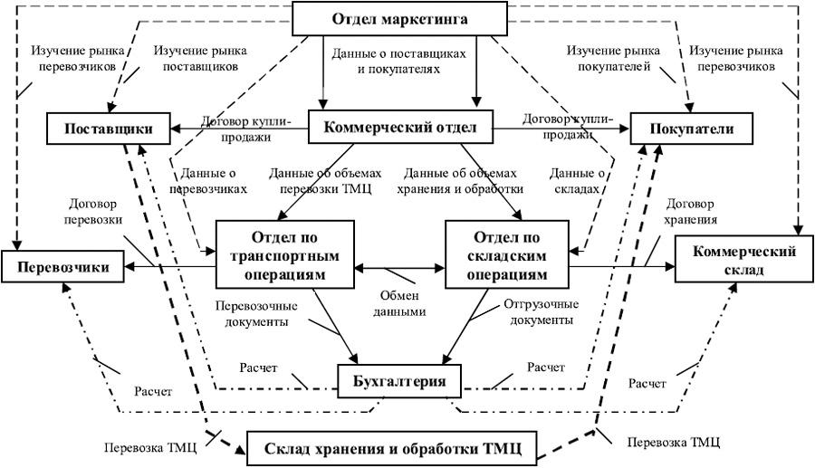 Указанные выше виды профессиональной деятельности традиционно организуются, и управляют ими обычно раздельно, для чего в предпринимательской организации выделяются специальные подразделения, например по закупкам, транспортным перевозкам, складированию, распределению, маркетингу, логистике и т. д.