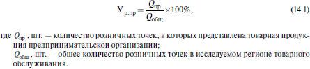 В качестве основного критерия анализа изменения структуры каналов распределения, цепей поставок, может выступать уровень максимального насыщения рынка товарной продукцией. За насыщение рынка можно условно принять уровень представления товарной продукции в розничной сети, рассчитываемый по следующей формуле: