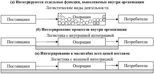 Внешняя интеграция. Если каждая организация исходит только из собственных целей, задач, операций, то между организациями обычно возникают ненужные препятствия, бюрократические барьеры и границы, мешающие в первую очередь материальному потоку, а также финансовому, информационному, сервисному и существенно повышающие затраты, снижающие скорость оборота экономических ресурсов и ухудшающие уровень обслуживания потребителей.