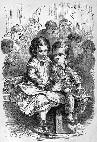 "The big boys quizzed me, made hideous faces at me from behind their spelling-books, and great hulking Tom Halliday threw a spit-ball that lodged on the wall just over my head, by way of showing his contempt for me; but I looked at Susie, and took courage."