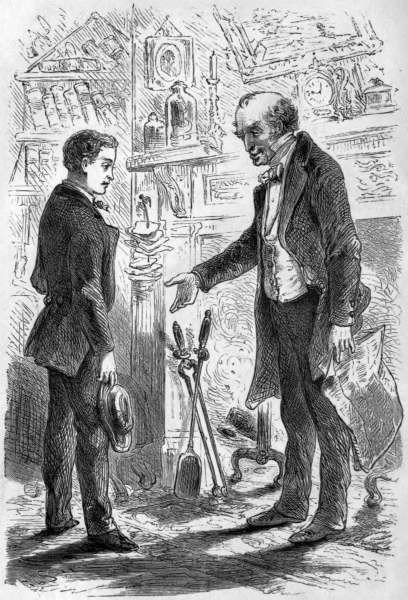 I have the image of him now, as he stood with his back to the fire, and the newspaper in his hand, giving me his last counsels. A little wiry, keen-looking man, with a blue, hawk-like eye, a hooked nose, a high forehead, shadowed with grizzled hair, and a cris-cross of deeply lined wrinkles in his face.