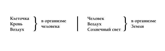 Заметим, что функция кровяного шарика по отношению к органической клеточке совершенно подобна функции воздуха по отношению к целому человеку.