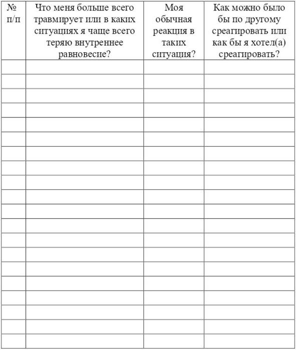 Можно подумать над реестром «травмирующих» ситуаций, напротив прописать Вашу реакцию, затем подумать над тем, что даёт эта реакция и если она не делает вас счастливым, устойчивым, уверенным, то ищите другой способ реагирования. Примеряя другой вариант, отслеживайте изменения в теле, в ощущениях, эмоциях. Душа умеет моделировать. Смоделируйте лучшую версию своего способа реагирования.