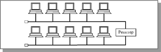 Рис. 1.2. Соединение сегментов сети типа шина с помощью репитера