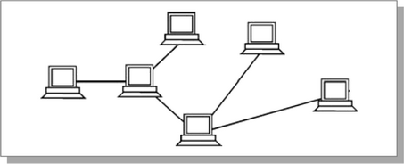 Частичная сеточная топология предполагает прямые связи только для самых активных компьютеров, передающих максимальные объемы информации. Остальные компьютеры соединяются через промежуточные узлы. Сеточная топология позволяет выбирать маршрут для доставки информации от абонента к абоненту, обходя неисправные участки. С одной стороны, это увеличивает надежность сети, с другой – требует существенного усложнения сетевой аппаратуры, которая должна выбирать маршрут.