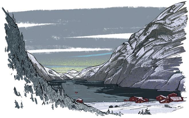 Этим декабрьским утром они поднялись рано. Когда выплыли на середину фьорда, лишь кончики вершин плато Кьёраг окрасились в золото. Солнце еще не опустило руки в прохладную глубину ущелья, не разогнало туман, курящийся над изумрудной водой Люсефьорда, и внизу, на дне километровой пропасти, царил полумрак, сквозь который скользила лодка, чуть слышно поскрипывая веслами в уключинах.