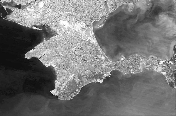 С севера Крым отделяют от материка Перекопский залив Черного моря и залив Сиваш Азовского моря.