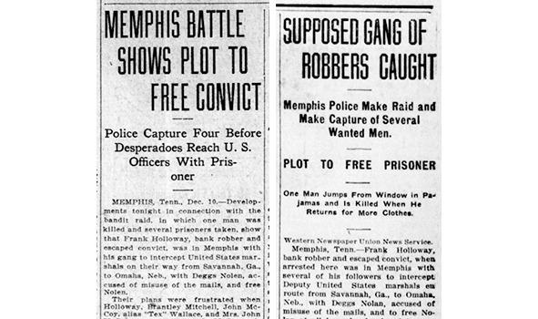 В это же самое время, но совершенно независимо от ограбления Джулса Штиффена, Деггс Нолин неожиданно решил рассказать судебным маршалам о неприятном сюрпризе, который их может ожидать при проезде Мемфиса. Мы вряд ли узнаем, что побудило бывшего почтового чиновника «развязать» язык, но вряд ли сильно ошибёмся, предположив, что двигала им банальная трусость. Оценив последствия возможного освобождения, Деггс понял, что хорошего выхода лично у него при любом исходе не будет. Даже если братишка сможет его освободить и никто при этом не пострадает, Деггсу предстоит жизнь в изгнании под чужой личиной, что вряд ли могло сильно порадовать. А если освобождение пойдёт не по плану и в результате появятся убитые, то Нолину реально будет угрожать «вытягивание шеи» или «горячий стул» за соучастие. Оно ему надо? Уж лучше заявить о раскаянии, отсидеть пару-тройку лет и выйти на волю с чистой совестью.