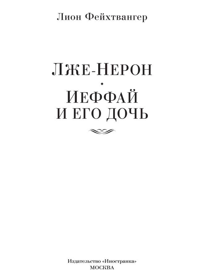 Лже-Нерон ; Иеффай и его дочь : романы / Лион Фейхтвангер ; пер. с нем. И. Горкиной, Р. Розенталь, Е. Михелевич. — М. : Иностранка, Азбука-Аттикус, 2024. — (Иностранная литература. Большие книги).