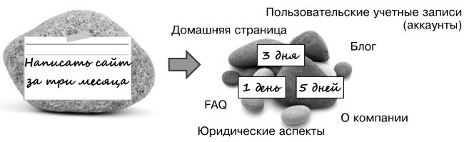 При гибкой разработке применяется тот же принцип. В данном случае под реализацией функции понимается решение всех задач, необходимых для получения готового к работе кода.