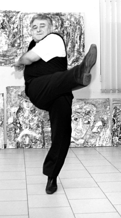 – Мах правой ногой влево с одновременным поворотом корпуса вправо, руки свободно сопровождают корпус вправо книзу.