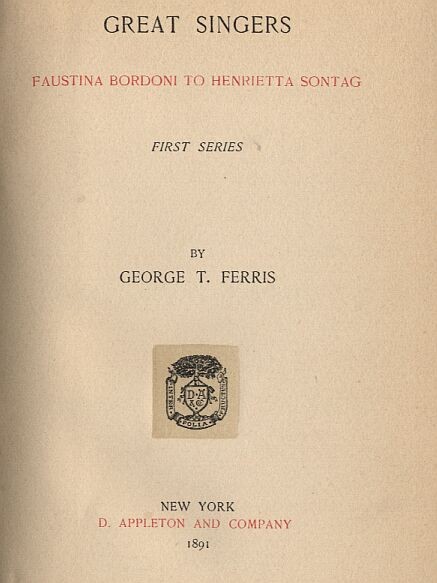 GREAT SINGERS, FROM FAUSTINA BORDONI TO HENRIETTA SONTAG.