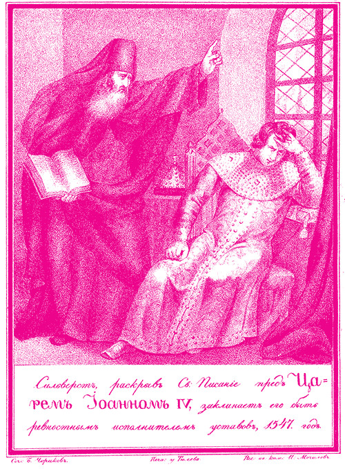 Едва вышедши из малолетства, еще не имея 20 лет, царь Иван с необычайной для его возраста энергией принялся за дела правления. Тогда, по указаниям умных руководителей царя: митрополита Макария и священника Сильвестра, из боярства, разбившегося на враждебные кружки, выдвинулось и стало около престола несколько дельных, благомыслящих и даровитых советников – «избранная рада». Так князь Курбский называет этот совет, очевидно получивший фактическое господство в Боярской думе, вообще в центральном управлении. С этими доверенными людьми царь и начал править государством.