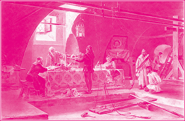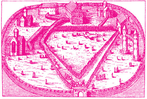 Жизнь в слободе. Началось устроение опричнины. Прежде всего, сам царь, как первый опричник, поторопился выйти из церемонного, чинного порядка государевой жизни, установленного его отцом и дедом. Он покинул свой наследственный кремлевский дворец, перевезся на новое укрепленное подворье, которое велел построить себе где-то среди своей опричнины, между Арбатом и Никитской. В то же время приказал своим опричным боярам и дворянам ставить себе в Александровской слободе дворы, где им предстояло жить, а также здания правительственных мест, предназначенных для управления опричниной. Скоро он и сам поселился там же, а в Москву стал приезжать «не на великое время». Так возникла среди глухих лесов новая резиденция – опричная столица с дворцом, окруженным рвом и валом, со сторожевыми заставами по дорогам. В этой берлоге царь устроил дикую пародию монастыря. Он подобрал три сотни самых отъявленных опричников, которые составили братию, сам принял звание игумена, а князя Афанасия Вяземского облек в сан келаря. Царь покрыл этих штатных разбойников монашескими скуфейками, черными рясами, сочинил для них общежительный устав, сам с царевичами по утрам лазил на колокольню звонить к заутрене, в церкви читал и пел на клиросе и клал такие земные поклоны, что со лба его не сходили кровоподтеки. После обедни, за трапезой, когда веселая братия объедалась и опивалась, царь за аналоем читал поучения отцов Церкви о посте и воздержании. Потом он одиноко обедал сам, после обеда любил говорить о законе, дремал или шел в застенок присутствовать при пытке заподозренных.