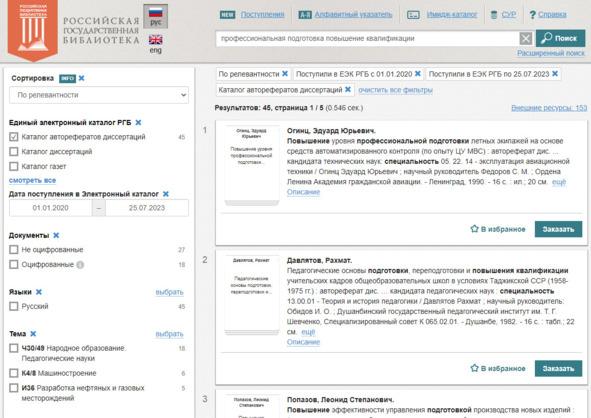 Для анализа источников обратитесь к поиску библиографий в Российской Государственной библиотеке, РГБ (search.rsl.ru), рис. 1.