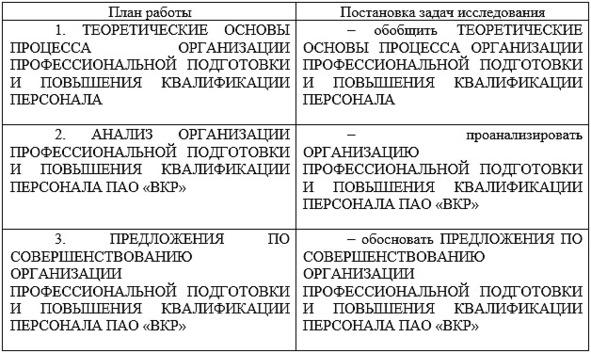 Ниже мы рассмотрим процесс написания исследования по теме: Организация профессиональной подготовки и повышения квалификации персонала, на примере ПАО «ВКР».