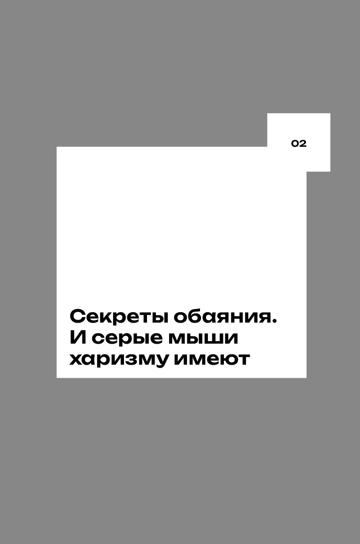 Быть человеком, которому все, будто по волшебству, готовы раскрыть свои тайны, а его самого слушают, затаив дыхание, и только восхищенно кивают в такт, — это ли не предел мечтаний? Харизматичные люди тратят гораздо меньше времени и энергии на то, чтобы расположить к себе собеседника, завоевать доверие публики. Кажется, у них это получается само собой: просто им повезло родиться такими классными. Так ли это на самом деле? Природе этого явления я посвящу отдельную, следующую главу, и мы рассмотрим его внимательнее и подробнее. Обещаю: будет много интересного и на первый взгляд противоречивого. Но именно на стыке противоречий и рождается уникальность этого феномена.