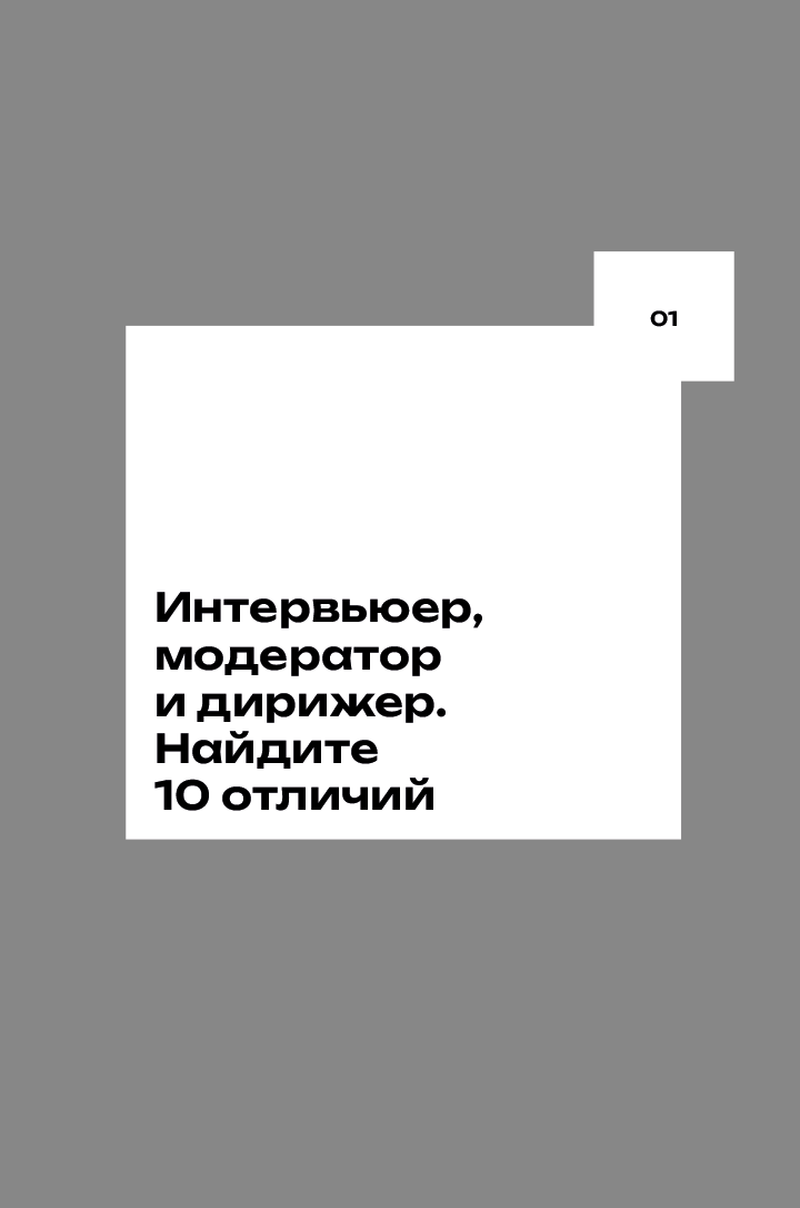 Эта книга для тех, кто пробует себя в роли модератора бизнес-дискуссий, но не только. На своих мастер-классах я всегда говорю, что на самом деле каждый из нас, не задумываясь об этом, берет интервью каждый день. Совещание о статусе нового проекта, встреча с подрядчиками или потенциальными партнерами, знакомство в бизнес-клубе, свидание — во всех этих мини-форматах присутствуют все первичные признаки интервью. А значит, нам просто необходимо владеть некоторыми профессиональными секретами.