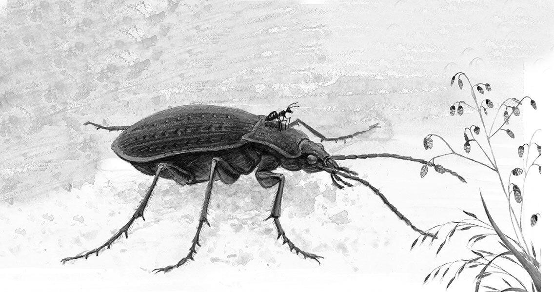 Только успел Муравьишка вскарабкаться Жужелице на спину, она как пустится бежать! Ноги у неё ровные, как у коня.