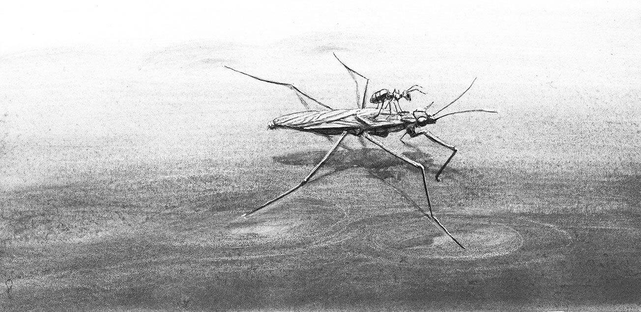 Сел Муравьишка. Водомер подпрыгнул и зашагал по воде, как посуху. А солнце уж совсем низко.