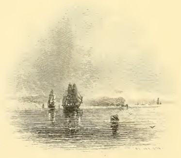 I said, that at sea all is vacancy; I should correct the impression. To one given to daydreaming, and fond of losing himself in reveries, a sea voyage is full of subjects for meditation; but then they are the wonders of the deep and of the air, and rather tend to abstract the mind from worldly themes. I delighted to loll over the quarter-railing or climb to the maintop, of a calm day, and muse for hours together on the tranquil bosom of a summer’s sea; to gaze upon the piles of golden clouds just peering above the horizon, fancy them some fairy realms, and people them with a creation of my own; — to watch the gently undulating billows rolling their silver volumes, as if to die away on those happy shores.