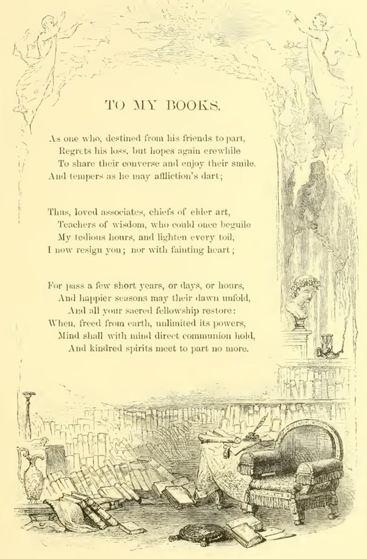 It is a beautiful incident in the story of Mr. Roscoe’s misfortunes, and one which cannot fail to interest the studious mind, that the parting with his books seems to have touched upon his tenderest feelings, and to have been the only circumstance that could provoke the notice of his muse. The scholar only knows how dear these silent, yet eloquent, companions of pure thoughts and innocent hours become in the season of adversity. When all that is worldly turns to dross around us, these only retain their steady value. When friends grow cold, and the converse of intimates languishes into vapid civility and commonplace, these only continue the unaltered countenance of happier days, and cheer us with that true friendship which never deceived hope, nor deserted sorrow.