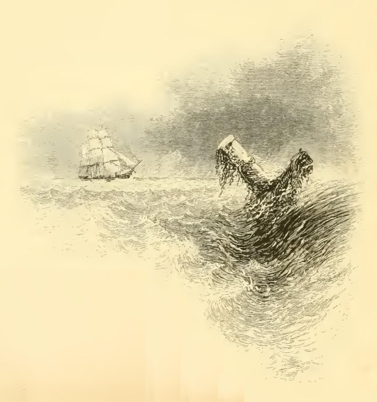 There was a delicious sensation of mingled security and awe with which I looked down, from my giddy height, on the monsters of the deep at their uncouth gambols: shoals of porpoises tumbling about the bow of the ship; the grampus, slowly heaving his huge form above the surface; or the ravenous shark, darting, like a spectre, through the blue waters. My imagination would conjure up all that I had heard or read of the watery world beneath me; of the finny herds that roam its fathomless valleys; of the shapeless monsters that lurk among the very foundations of the earth; and of those wild phantasms that swell the tales of fishermen and sailors.
